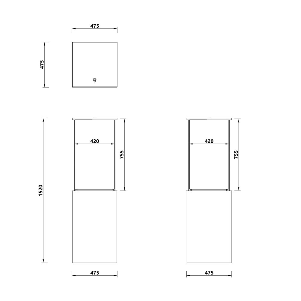 Die Vitrine ist tragbar und besteht aus 4 Plexiglaspaneelen, 2 Abdeckkappen, 1 Rohrprofil und 1 Standfuß. Auf Anfrage sind verschiedene Maße und Höhen erhältlich.